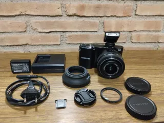 Cámara digital Samsung NX1000 en buen estado. Compacta y fácil de usar. - Sensor APS-C. - 20.3 Mpxles. - Ideal para iniciación. Buenos resultados. - Incluye objetivo 20-50mm. - Parasol de goma Hama 40.5mm, plegable. - Filtro UV Hama. - Filtro k&f ND Variable 2-400. - Una correa básica. - Tarjeta, batería, cargador y cable de descarga USB.