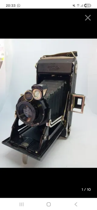 Zeiss Ikon Ikonta original de la década de 1930. Una pieza esencial de la ingeniería alemana, ideal tanto para coleccionistas como para amantes de la fotografía analógica de formato medio (120/220). Mecánica: El disparador funciona correctamente. La palanca de cambios presenta cierta resistencia pero es operativa. Óptica/Visor: El visor requiere una limpieza para una claridad óptima. Estética: Buen estado general para su antigüedad, con una pátina auténtica que resalta su historia.