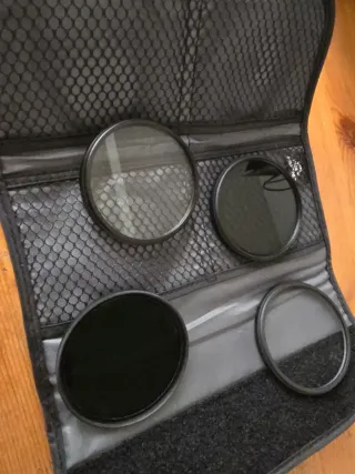 Set de filtros Hoya para lentes de cámara réflex. Incluye varios filtros para diferentes efectos. - Filtro circular. - Montura metálica. - Estuche protector.