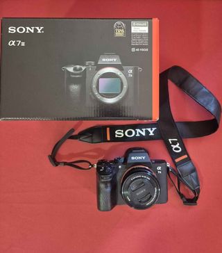 Cámara digital Sony Alpha 7 IV con sensor full-frame. - Sensor de imagen CMOS Exmor R retroiluminado de 33 MP - Creación de vídeos con capacidad de grabación en 4:2:2 de 10 bits en 4K de 60p - Capacidades de enfoque automático fiables que incluyen Eye AF en tiempo real para personas, animales y pájaros. - Tiene 3 años, usada y cuidada por fotógrafo. Nueva cuesta 3.200 euros.