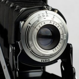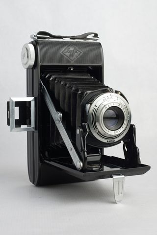 Cámara de fuelle plegable; Objetivo Agfa Agnar de 105mm; 1:6,3; Obturador vario 1/25, 1/50, 1/200 y B; visor deportivo. FUNCIONA. Mínimas señales de uso.