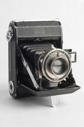 Cámara de fuelle plegable; objetivo Nettar Anastigmat de 75mm; 1:4,5; obturador Zeiss Ikon Klio a 1, 1/2, 1/5, 1/10, 1/25, 1/50, 1/100, 1/175, B y T; visor deportivo. FUNCIONA. Pequeñas señales de uso propias de su antigüedad; en velocidades lentas, el obturador está pegajoso por el desuso prolongado de la cámara.