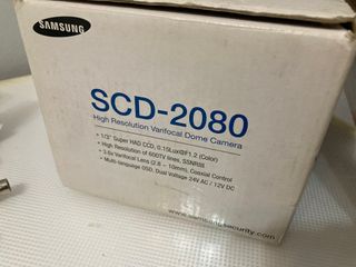 Cámara de seguridad Samsung SCD-2080. - Sensor 1/3 Super HAD CCD. - Resolución de 600 líneas de TV. - Lente varifocal 3.6x (2.8~10mm). - Control coaxial. - OSD multilingüe. - Doble voltaje 24V AC / 12V DC.