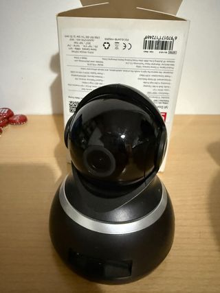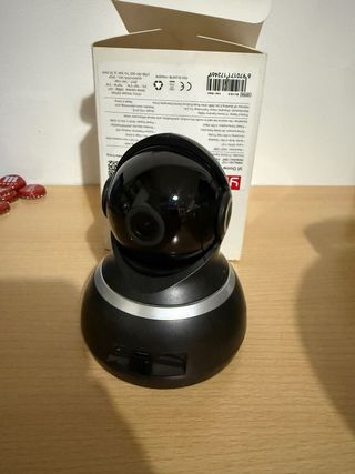 Cámara de vigilancia inteligente. Funciona mediante una app para movil. Nueva. Incluye: - Cámara de seguridad. - Soporte de pared y tornillos. - Manual de instrucciones.