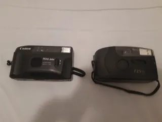 Se venden dos cámaras de fotos de carretes, perfectas para los amantes de la fotografía tradicional. - Cámara Canon - Cámara Fujifilm - Desconozco si funciona puesto que llevan más de 20 años en un cajón