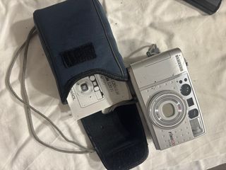 Cámara compacta Olympus D745 en color negro. - Diseño elegante y portátil. - Ideal para capturar tus momentos. Como nueva. Poco uso. Incluye tarjeta SD 4Gb, cable de carga/conexión USB y funda