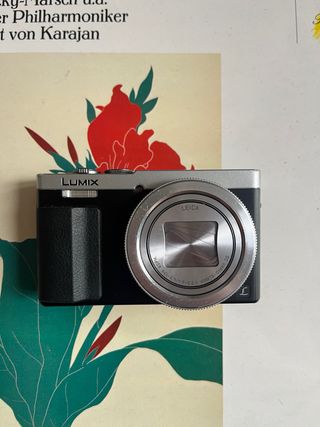 Cámara compacta Panasonic Lumix TZ70 en color plata y negro. Perfecto funcionamiento. Con lente leica. 60x de zoom y funcionalidad WiFi. Si tienes cualquier duda preguntáme! Con la compra incluyo: Tres baterias para la cámara Cargador Tarjeta de memoria 16gb Funda de piel negra Caja original con CD de instalación A tener en cuenta que la pestañita que sujeta la bateria está rota, pero al cerrar el compartimento la bateria se queda en su sitio perfectamente.