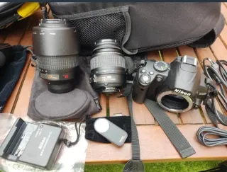 Conjunto Cámara Nikon D3000. Compuesto por cámara, objetivo Nikon dx 18-55, Nikon dx 55-200, flash speedlite YN460-II, disparador remoto (Amazon basic), batería, cargador, y mochila. Todo en perfecto estado y con muy poco uso. Ideal para iniciarse en el mundo de la fotografía.