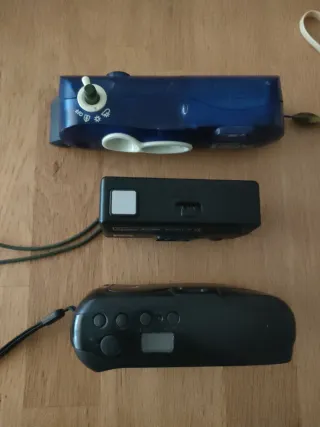 Conjunto de tres cámaras fotográficas. - Cámara Polaroid i-Zone. - Cámara Kodak pocket A-1. - Cámara Nikon ZOOM 120 AF.