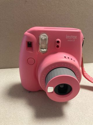 Cámara instantánea Fujifilm Instax Mini 9 en color rosa. - Lente de 60 mm. - Incluye correa para colgar.