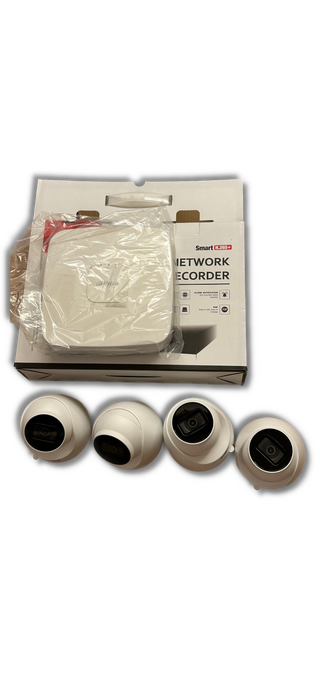 Sistema de videovigilancia Dahua con grabador NVR y cuatro cámaras IP PoE. - Grabador de red (NVR). - Cuatro cámaras IP con tecnología PoE. - Visión nocturna. Solo venta en persona