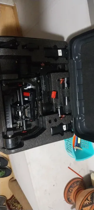 Este lote incluye varios accesorios para cámaras DJI. - Estuche de transporte con interior troquelado. - Mando a distancia. - Gimbal. - Componentes adicionales para montaje.