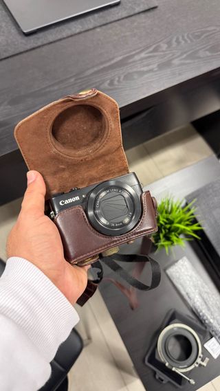 Cámara Canon G7X Negra con Funda Marrón