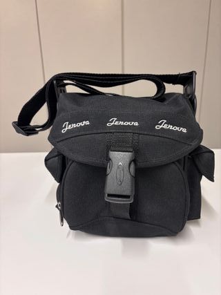 Funda para cámara de fotos de la marca Jenova. Es de color negro y tiene un diseño práctico. - Cierre con clip. - Correa ajustable. - Bolsillos exteriores.
