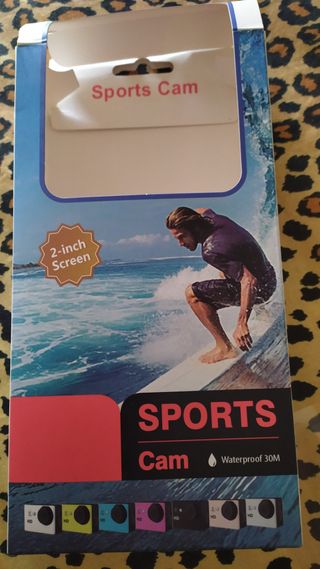 Cámara deportiva con pantalla de 2.0 pulgadas, ideal para capturar tus aventuras. - Resolución Full HD 1080p. - Sumergible hasta 30 metros. - Incluye accesorios de montaje.
