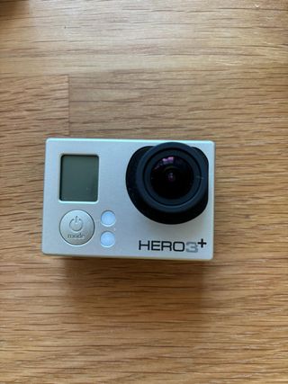 Cámara de acción GoPro HERO3+ en color plateado. Está en perfecto estado con todos sus acessorios originales. Lo unico que no tiene es el cable para cargarla, que por 2€ lo compras nuevo en cualquier sitio. Es un cable mini USB normal. La vendo porque me he comprado otra.