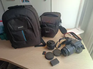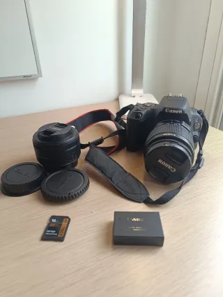 Cámara Canon EOS 200D + accesorios + 2 objetivos