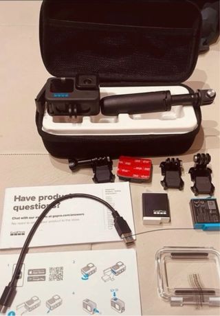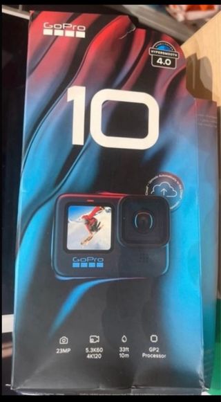 Se vende cámara de acción GoPro HERO 10 Black con varios accesorios. - Arnés - Empuñadura - tripode - palo selfie - 2 Baterías, 1 dotación y otra enduro - Carcasa protectora impermeable(40m) - todos los demás componentes que vienen de dotación (pegatinas, soporte casco, otro soporte, estuche etc ...) LAS PANTALLAS AÚN CONSERVAN LA PEGATINA PROTECTORA POR FAVOR NO OFERTAS ABSURDAS