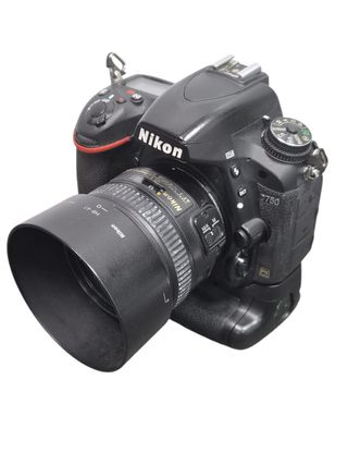 Cámara réflex digital Nikon D750 en color negro, con empuñadura. - Cuerpo de cámara. - 29050 disparos - Objetivo 50mm 1.4 - Empuñadura adicional.