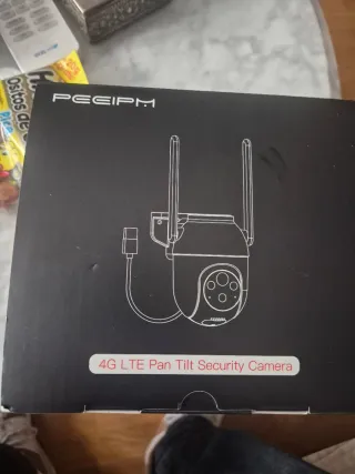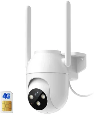 Cámara de vigilancia para exteriores con conectividad 4G. - Funciona con tarjeta SIM. - Diseño blanco. - Antenas para mejor recepción.
