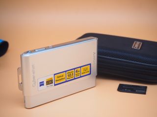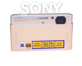 Cámara digital compacta Sony Cyber-shot. - Sensor de 6.0 megapíxeles. - Zoom óptico Vario-Tessar. - Alta sensibilidad ISO 1000. - Incluye cargador y batería.
