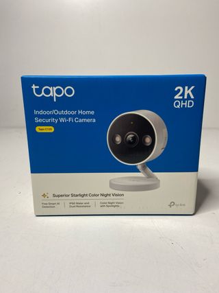 Cámara de seguridad Wi-Fi Tapo C120 para interior/exterior. - Resolución 2K QHD. - Visión nocturna a color superior. - Detección inteligente de IA. - Resistencia al agua y al polvo IP66. - Visión nocturna con focos.
