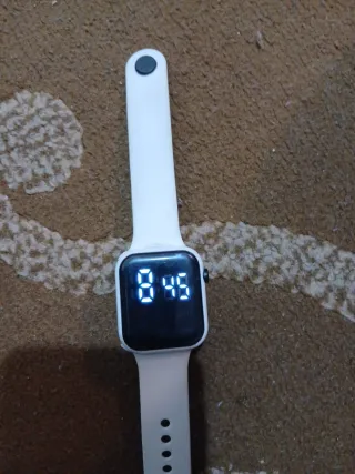 Reloj digital con correa blanca. - Diseño moderno y minimalista. - Pantalla digital clara. Solo es para ver la hora y el dia y los segundos