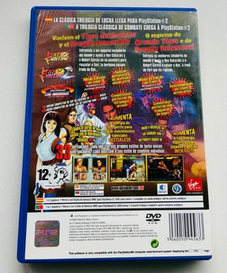 Juego de lucha para PlayStation 2 PAL España, completo, que recopila varios títulos de la saga. - Incluye Art of Fighting, Art of Fighting 2 y The Path of the Warrior. - Clasificación PEGI 12+. - Caja, caratula, instrucciones y cd con signos de uso pero en buen estado y funcional 100% - Envío mediante Wallapop