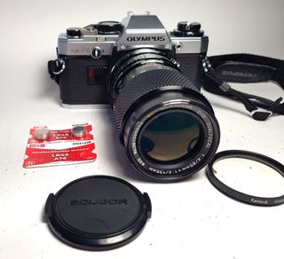 Camara revisada i probada ,con visor limpio i exposimetro functiona bien ,con signos de su tiempo ,sin golpes o rayas ,con sellos de luz nuevos . Viene con un objetivo excelente Dualfocal f=85/1:4 i f=135/1:4 ,objetivo raro ,en excelente condicione muy practico en fotgrafias a la calle o en excursiones . Camara viene con su correa Olympus ,con dos pilas LR44 nueva i el objetivo con su tapa . De regalo es un filtro UV Kenlock ,de buena calidad pero con un diente en cristal ,no afecte las fotos ,no se ve . Camara se puede utilisar sin problemas .