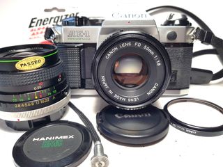 Cámara réflex analógica Canon AE-1 revisada y probada ,con visor limpio i exposimetro functiona bien ,sellos de luz nuevos , cámara tiene signos de uso pero es sin golpes , raya profunda ,con objetivo Canon FD 50mm 1:1.8 S.C. que tiene signo de uso pero la optica i mecanica excelente ,de los buenos ,metalico entero y flash Metz 20BC4. - Cuerpo de cámara plateado y negro. - Objetivo con apertura f/1.8. - Incluye flash Metz 20BC4. - Se incluyen baterías Varta y Energizer.