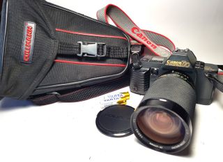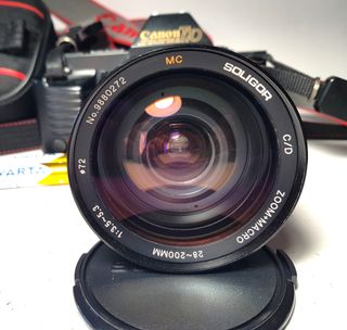 Canon T70 con objetivo Soligor 28-200mm