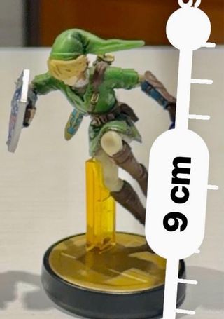 Figura Amiibo de Link de The Legend of Zelda. Ideal para coleccionistas. - Diseño detallado del personaje. - Base negra con logo. - Soporte transparente.