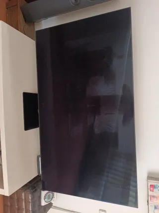 Televisor LG en color negro. Presenta una raya visible en la pantalla. - Modelo LG. - Color negro.