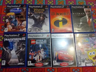 Colección de 8 videojuegos para PlayStation 2. 5€ cada juego. - Ratatouille - Piratas del Caribe: En el fin del mundo - Los Increíbles - Hitman: Blood Money - Transformers: The Game - LEGO Star Wars II: La Trilogía Original - Cars (Rayo McQueen) - Bob Esponja: La Película