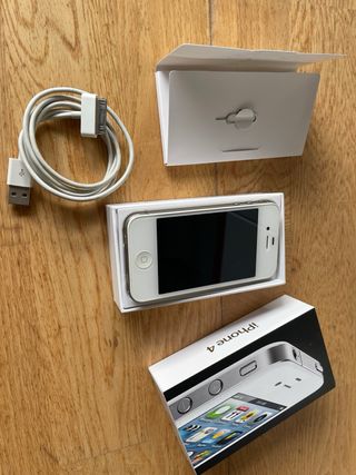 Teléfono móvil iPhone 4 en color blanco. - Pantalla de 3.5 pulgadas. - Cámara trasera de 5 megapíxeles. - Capacidad de 8 GB. - Incluye 1 cargador - Pantalla perfecta - Incluye la caja original perfecta