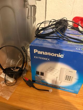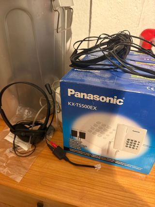 Lote de tres teléfonos fijos y dos auriculares. - Marca Panasonic. - Color negro.