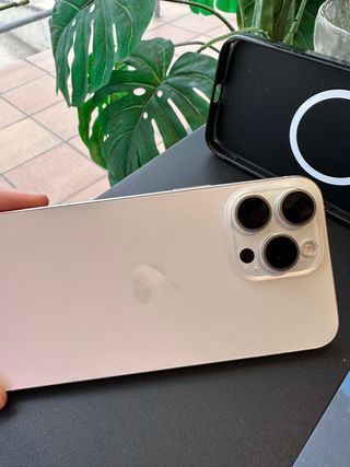 iPhone 15 Pro Max de 256 GB en color blanco, en muy buen estado y funcionando perfectamente. Fabricado en enero de 2024. 81% capacidad de batería. Estado: Muy cuidado, sin golpes ni fallos. Incluye: Caja original y funda protectora. Se puede ver y probar sin compromiso.