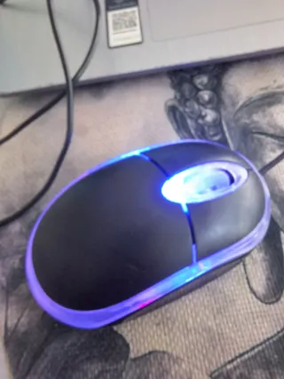 Ratón para ordenador con un diseño moderno y llamativo. Perfecto para darle un toque de estilo a tu espacio de trabajo. - Diseño ergonómico. - Iluminación LED azul. - Ratón de ordenador óptico con cable USB y retroiluminación LED azul. - Se conecta mediante un cable USB-A estándar. - Utiliza un sensor óptico para rastrear el movimiento con precisión. - Cuenta con un diseño ergonómico que suele ser adecuado tanto para usuarios diestros como zurdos. - Incorpora iluminación luces LED azules en los laterales y la parte superior para un efecto estético.