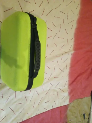 Funda protectora para Nintendo Switch en color verde brillante. Diseñada para transportar y proteger tu consola y accesorios. - Material exterior resistente. - Cierre de cremallera. - Interior con compartimentos.