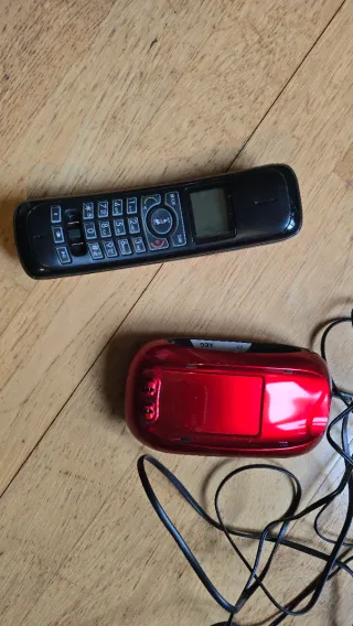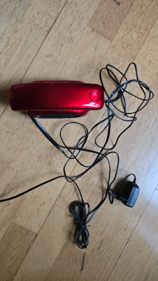 Teléfono inalámbrico de la marca AEG en color rojo. - Diseño moderno y elegante. - Base de carga compacta.