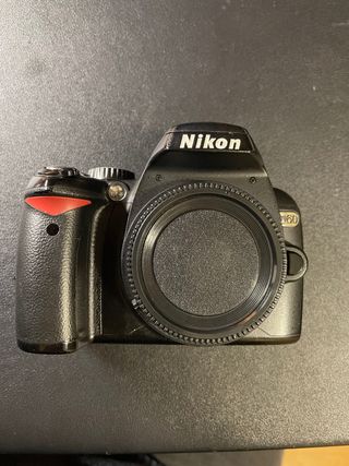 Cámara réflex digital Nikon D60 en color negro. - Cuerpo de cámara. - Tapa delantera del objetivo. Bateria y cargador original Nikon Targeta de memoria y correo Nikon original mas una bateria de reserva.