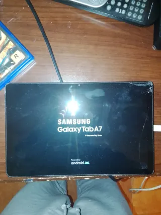 Tablet Samsung Galaxy Tab A7 en color negro. - Pantalla de 10.4 pulgadas. - Diseño delgado y ligero. Tiene un pequeño golpe pero va perfecta