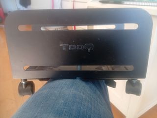 Soporte metálico negro para la torre de tu ordenador. - Diseño moderno con ranuras. - Ruedas para facilitar el movimiento. - Marca: TooQ.
