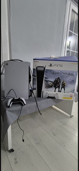 Se vende PlayStation 5 con lector de discos en perfecto estado estético y de funcionamiento. Es el modelo estándar, compatible con juegos físicos y digitales. Incluye mando DualSense original sin fallos de drift, cables originales (alimentación, HDMI y carga) y la peana para colocarla en vertical u horizontal. Se entrega con la caja oficial de la edición especial God of War Ragnarök, ideal para coleccionistas o regalo. Importante: no incluye el videojuego, ya que el código fue canjeado. Se puede ver y probar sin compromiso. Precio algo negociable, abstenerse ofertas absurdas.