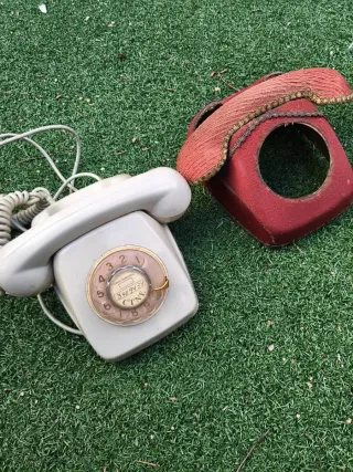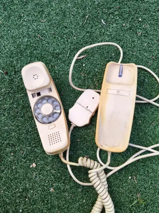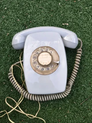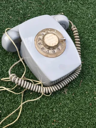 Teléfono antiguo con un diseño clásico y elegante. Ideal para coleccionistas o para dar un toque retro a tu hogar. - Mecanismo de disco para marcar. - Cable en espiral.