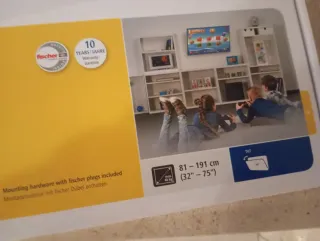 Soporte de pared para TV Fischer, apto para pantallas de 32 a 75 pulgadas. Incluye herrajes. - Soporta hasta 40 kg. - Permite una inclinación de hasta -10 grados. - Incluye tacos Fischer para montaje.