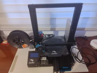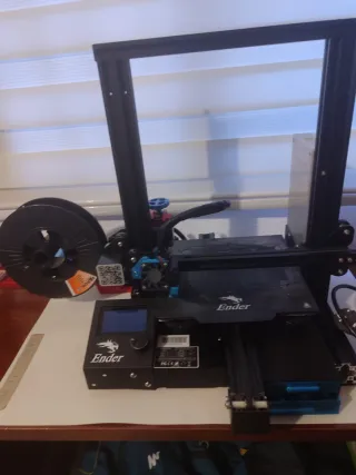 Impresora 3D Creality Ender en color negro y azul. Ideal para proyectos de impresión. - Incluye varias bobinas de filamento. - Pantalla LCD para control. - Estructura robusta.