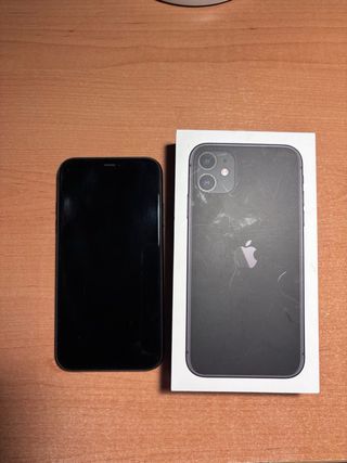 Teléfono móvil iPhone 11 en color negro, en excelente estado. - Pantalla de 6.1 pulgadas. - Cámara dual de 12 MP. - Chip A13 Bionic.