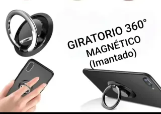 Soporte giratorio 360° magnético para móvil. - Anillo metálico de aleación de zinc. - Base negra. - Compatible con soportes de coche magnéticos.