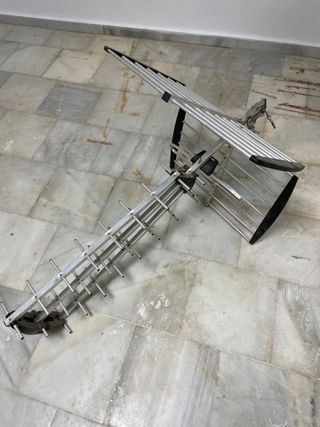 Antena para televisión digital exterior, diseñada para captar señales TDT en bandas UHF y VHF.